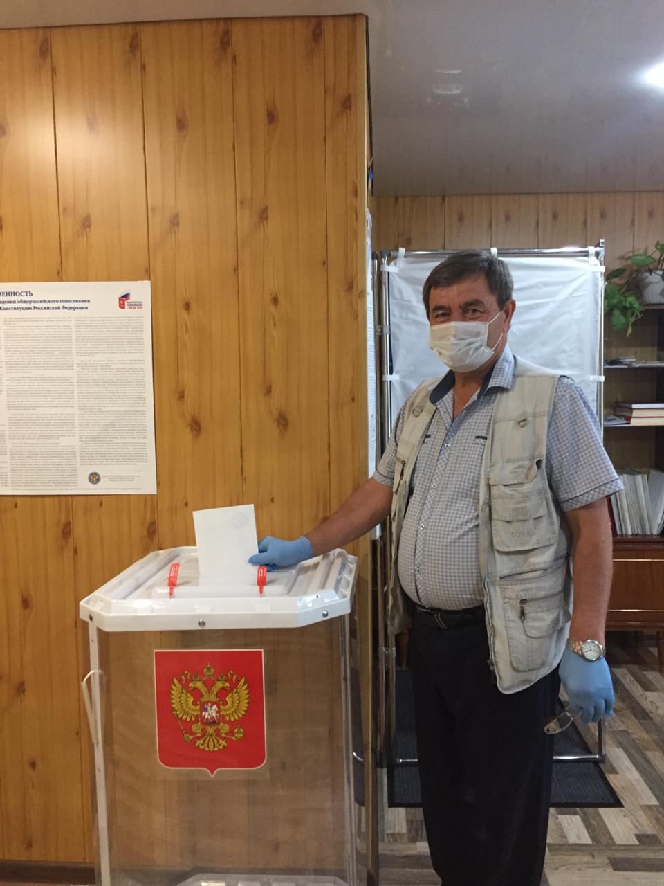 В здании Алмалинского сельсовета, на избирательном участке 1782 началось голосование по поводу поправок в конституцию. Глава сельсовета одним из первых опустил  свой голос в избирательную урну.